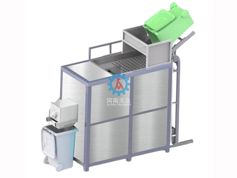 提升分拣压榨减量一体机是一台适用于环卫处及室内外就地处理减量的一体化设备。该设备适用于餐厨垃圾、果蔬垃圾、厨余垃圾的提升分拣减量处理。设备分别由环卫桶提升翻转机、分拣滤水平台、粉碎压榨脱水一体机、主机架、人工分拣台、管道等组成。设备均采用一体化连接紧固现场固定使用。入料通过环卫桶举升入料,经过分拣,破碎,压榨,脱水后出料,出料口可采用环卫桶进行接料。